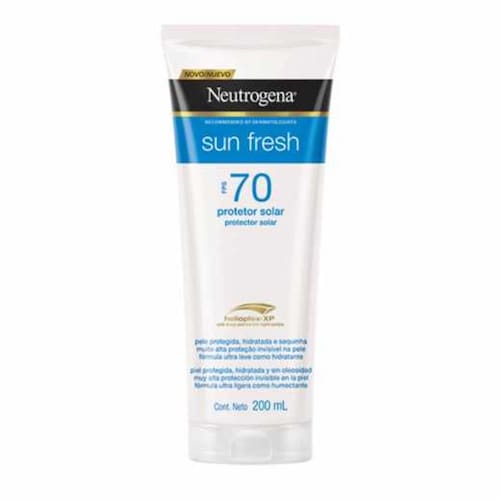 O protetor solar Sun Fresh FPS70 Neutrogena possui fórmula não oleosa e com alto poder de absorção, deixando a pele do rosto e do corpo protegida, hidratada e sequinha.