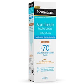 Neutrogena Sun Fresh Hydro Boost FPS 70 Cor 3.0 Pele mais jovem, radiante e firme Ácido hialurônico e boost de vitaminas (C, E e niacinamida) Possui textura fluida para todos os tipos de pele. A exclu