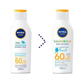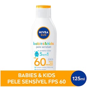 Protetor Solar Nivea Sun Kids & Babies Pele Sensível FPS 60 125ml O que é? Protetor solar de FPS 60, para crianças e bebês a partir de 6 meses, com minimização de alergias, alta resistência à água aos