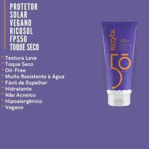 Protetor Solar Ricosol Fps50 Especialmente formulado para prevenir os sinais do envelhecimento precoce da pele causados pelo sol. Alta proteção contra a radiação UVB e UVA Rapidamente absorvido pela p