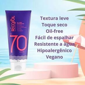 Ricosol Protetor Solar FPS 70 Especialmente formulado para prevenir os sinais do envelhecimento precoce da pele causados pelo sol. Proteção muito alta contra a radiação UVB e UVA Rapidamente absorvido