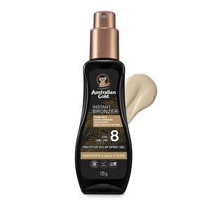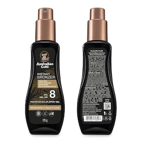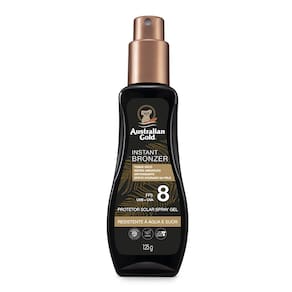 Australian Gold Instant Bronzer FPS 8 oferece proteção contra os raios UVA e UVB e uniformiza o tom da pele.