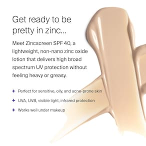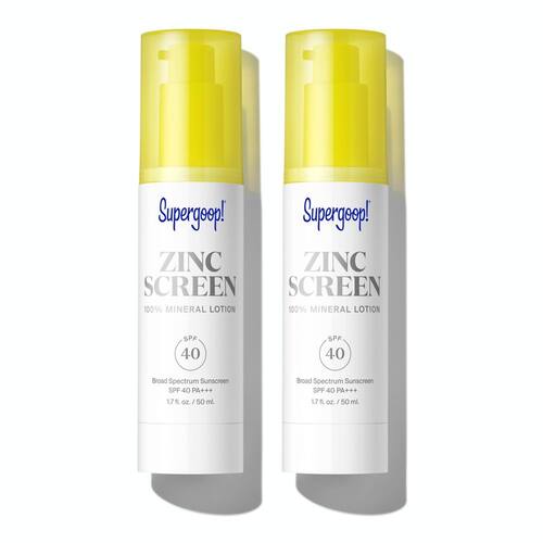 Supergoop! Loção Zincscreen 100% Mineral SPF 40 (pacote com 2) - Protetor solar 100% mineral: Zincscreen é uma loção facial leve e não nano de óxido de zinco que oferece proteção FPS 40 de amplo espectro contra os raios UV prejudiciais do sol. - Bonito em zinco – O óxido de zinco é um pó branco, tornando impossível continuar transparente. Para reduzir o tom branco que os protetores solares tradicionais com zinco oferecem, formulamos Zincscreen com um tom rosa que combina translúcido na maioria dos tons de pele. - Ingredientes protetores: cereja de inverno, extrato de fruta de coco e extrato de mirtilo são ingredientes nutritivos que ajudam a proteger sua pele dos danos UV e ajudam a filtrar a luz azul e outros agressores. - Para todos os tipos de pele: o Zincscreen funciona lindamente em peles sensíveis, propensas a acne ou oleosas. Nossa tecnologia de mistura mineral torna a aplicação super fácil, ajudando a reduzir a giz para um acabamento puro e hidratante que nunca parece pesado ou gorduroso. - Como aplicar: aplique generosamente e uniformemente como o último passo em sua rotina de cuidados com a pele e 15 minutos antes da exposição ao sol. A tela de zinco funciona bem sob maquiagem, deixando a pele suave e macia.