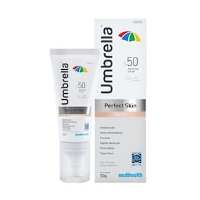 Imagens meramente ilustrativas. Umbrella Perfect Skin FPS 50 é um protetor solar de última geração. Sua combinação exclusiva de ingredientes que ajudam a proteger a pele da radiação solar UVB, UVA, do efeito nocivo da radiação UV-Vísivel de alta energia (UV-HEV) e minimiza os danos mais profundos na pele causados pelos raios infravermelhos.
