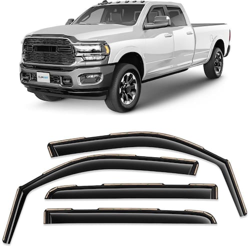 Gosta de manter as janelas abertas, mas o vento barulhento, a chuva e a neve tornam a condução no seu carro uma experiência terrível? Apresentando escudos de janela de carro CLIM ART que são especialmente projetados para desviar a chuva, vento, luz do sol e neve para tornar os passeios de carro uma experiência mais agradável para você e sua família. Guardas de janela de carro CLIM ART - Manter as janelas abertas enquanto dirige em alta velocidade é uma tarefa assustadora, pois o vento e as chuvas podem causar desconforto aos passageiros dentro; - O design simplificado especial das proteções da janela desvia os elementos ambientais alterando o padrão de fluxo de vento aerodinâmico do veículo; - Permite que o ar fresco circule no carro, evitando a necessidade de ar condicionado e, assim, economizando montagem no canal de combustível ; - Vem em uma cor escura para maior proteção solar enquanto também adiciona à aparência do seu precioso carro; - Protetores de chuva de janela são adequados para lavagem de carro. O pacote inclui: -2 defletores dianteiros; -2 defletores traseiros; -instruções de instalação; -kit de montagem e lenços desengordurantes. Compatível com Dodge Ram 2500 2019-2025, 3500 Mega Cab, Dodge Ram 2500 2019-2025, 3500 Crew Cab. OFERECEMOS UMA GARANTIA DE 100% DE SATISFAÇÃO! Se o nosso produto não lhe agradar, substituiremos o produto ou ofereceremos um reembolso total, sem perguntas. Então, por que pensar duas vezes? Peça agora e obtenha nossos protetores de chuva de janela imediatamente! - Atenção! Ajuste personalizado apenas para Dodge Ram 2500 3500 2019-2025 Crew Cab, Mega Cab. - Torne os passeios de carro mais agradáveis — Abra as janelas e aproveite CLIM ART brisa enquanto navega por aí, sem se preocupar com o vento barulhento, neve fria, borrifos/respingos de chuva irritantes ou o sol escaldante com defletores de janela lateral. Dirija com estilo e conforto com nossos acessórios de caminhão - escudos de janela de carro! - Incrivelmente durável e legal — Feito com plástico PC de qualidade premium de cor escura resistente, resistente e inquebrável, nossos protetores de chuva de janela apresentam um design flexível simplificado que não dobra, quebra ou racha, enquanto seu design inteligente adiciona à aparência do seu caminhão! - Todas as ferramentas incluídas — Estes protetores de chuva para caminhões apresentam uma montagem no canal com fita 3M para aderência extra forte. O kit de montagem inclui todas as ferramentas necessárias e instruções abrangentes para uma instalação bem-sucedida da viseira da janela. Nenhuma perfuração é necessária para instalar nossa sombra de ventilação! - PROMESSA DE QUALIDADE — Os defletores de janela das viseiras de ventilação vêm com uma garantia vitalícia limitada para que você possa comprar sem preocupações ou dúvidas! No entanto, temos certeza de que nossas viseiras de janela de carro não deixarão de agradar você!