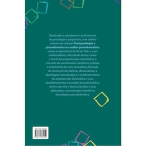 Destinado a estudantes e profissionais da psicologia e psiquiatria, este sétimo volume da coleção Psicopatologia e psicodinâmica na análise psicodramática reúne a experiência de Victor Dias e seus colaboradores, discutindo temas como: a teoria da programação cenestésica; o conceito de sentimentos corretivos; eclosão e tratamento da crise associativa derivada da resolução das defesas dissociativas; a abordagem psicoterápica e medicamentosa da angústia pós traumática e seus desdobramentos na análise psicodramática; átomo de crise e átomo familiar e suas aplicações; a psicoterapia infantil na abordagem psicodramática. Textos de Victor Roberto Ciacco da Silva Dias, Virgínia de Araújo Silva, Milene Shimabuko Silva Berto, Claudio Samuelian e Katia Pareja.