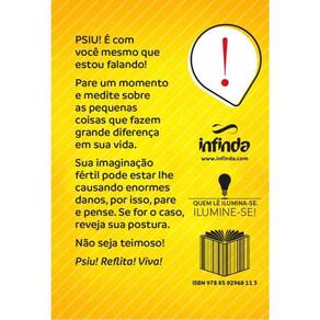 OBRA DE SUCESSO DO CONSAGRADO ESCRITOR ADEILSON SALLES, AMPLAMENTE REVISTA, AMPLIADA E COM NOVO PROJETO GRÁFICO. EDIÇÃO LIMITADA COM BELA SACOLINHA DE PRESENTE! Psiu! É com você mesmo que estou falando! Pare um momento e medite sobre as pequenas coisas que fazem grande diferença em sua vida. Toda situação tem dois lados, você já parou para pensar? Sua imaginação fértil pode estar lhe causando enormes danos, por isso, pare e pense. Se for o caso, reveja sua postura. Não seja teimoso! E se você estivesse no lugar daquela pessoa? O que faria? Psiu.. Olhe a vida com mais compreensão!
