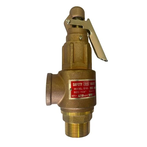 PSV ET3701BM12 Válvula Segurança Latão 1.1/2 BSPT Alavanca Válvula de Segurança e Alivio tipo mola Modelo ET-3701 tem função de aliviar automaticamente a pressão do Vaso de pressão ou da Linha, Toda vez que ultrapassar o valor pré-estabelecido de ajuste. Características Técnicas: Pressões de Ajuste padronizadas: de 0,75 kgf/cm até 30 Kgf/cm Temperatura de Operação: de -140C a + 240C Material do corpo: BRONZE-LATÃO Material da Sede: Latão laminado Essa válvula pode ser instaladas em boiler , caldeiras, e redes , e atende a Norma NR13. Enviamos com Certificado e ajuste de abertura conforme solicitação do cliente.
