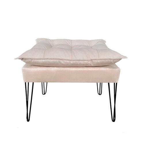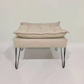 Puf Opala Bege Pés De Ferro Preto Verniz Para Sala E Quarto