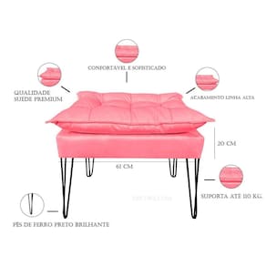 Nosso puff decorativo é confeccionado com materiais de alta qualidade e possui um design moderno e sofisticado, que se adapta facilmente a diferentes estilos de decoração. Além de oferecer conforto e praticidade, ele também é uma excelente opção para otimizar o espaço do ambiente, podendo ser facilmente movido e guardado quando não estiver em uso.