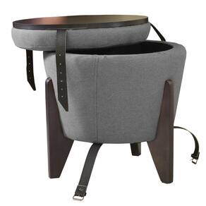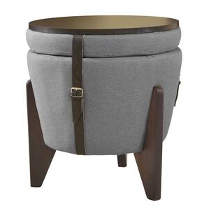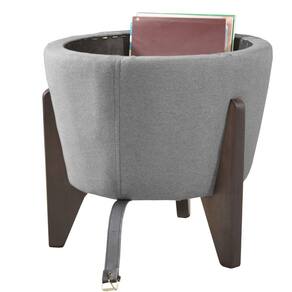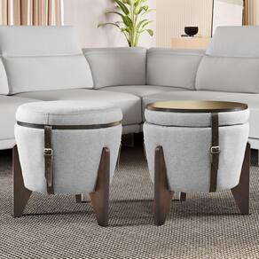 - medidas: a 51 cm, l 47 cm, c 47 cm; - peso: 10 kg. Composição: - tecido: linho cinza - tampo: mdf laminado preto; - pés: madeira eucalipto tratado de alta resistência; - detalhes: fivelas pratas e couro síntetico preto; -espuma: af com densidade d-20