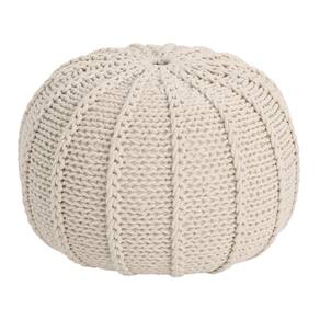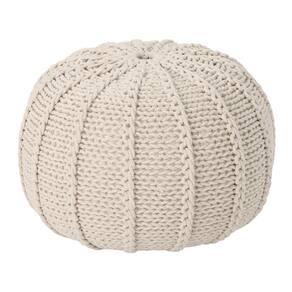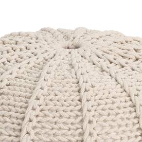Pufe redondo de malha Benjara, detalhes tecidos à mão, algodão bege de 20 polegadas