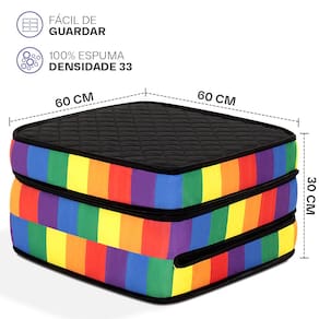 O revestimento de poliéster bordado em matelassê proporciona um toque macio e aconchegante ao puff, enquanto as cores vibrantes do arco-íris trazem alegria e personalidade ao ambiente. Essa combinação única torna o Puff 3 em 1 Dobrável D33 uma peça decorativa e funcional que se destaca em qualquer espaço.