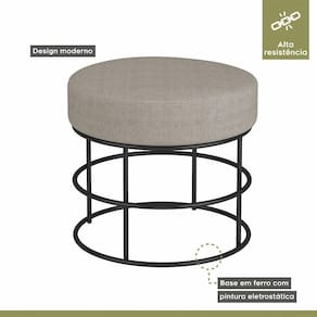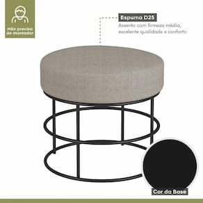 Puff Anunciação Revestimento Em Linho Mais Decor Preto/areia O Puff Anunciacao se apresenta como peca chave para a decoracao de sua casa, loja, ou escritorio pois agrega um design contemporaneo e descontraido aos ambientes em que for . Sem falar do amplo conforto e charme que esse puff trara para seu espaco. Excelente opcao para criar um estilo unico e se destacar entre seus moveis. A base e charmosa e combina perfeitamente com a almofada redonda, se tornando ideal para receber suas visitas e convidados, proporcionando conforto e modernidade. Caracteristicas: Marca: Mais Decor Modelo: Anunciacao Material da Estrutura: Metal Revestimento: Linho Enchimento: Espuma D-23 Material dos Pes: Ferro Possui Pes: 04 Estilo: Moderno Necessita Montagem: Nao Recomendacoes de , Manutencao e Limpeza: Uma boa maneira de aumentar o tempo de vida util do seu sofa e evitar exposicao direta do estofado ao sol, ja que os raios podem queimar e manchar a grande maioria dos tecidos desses itens da sua casa. Escala de Brilho: Fosco Suporta Ate (kg): 120