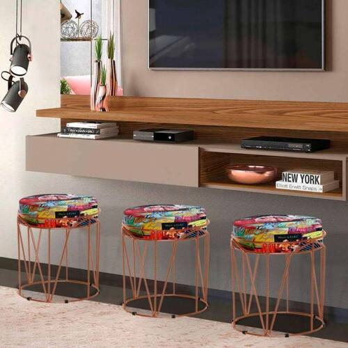O Puff Aramado Babu Com Armação Bronze Estofado Em Suede é perfeito para você