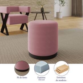 Puff Banco Decorativo Orgânico Living Redondo Marí 41x46cm Veludo Rosê - Desk Design - Rosa