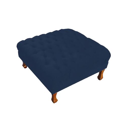 Puff Banco Retrô Luis Xv Capitonê 40 x 70 x 70cm Sala Salão Suede Azul Marinho - LM DECOR