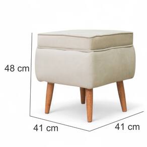 Estrutura: Madeira Maciça de eucalipto de reflorestamento Revestimento: Tecido Veludo de alta qualidade Formato: Quadrado Assento: Fixo, em espuma D26Pés: Sim, palito de madeira maciça de eucalipto Peso: Suporta o peso de 100 KilosDimensões do produto montado