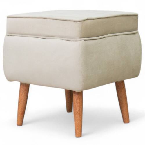 Estrutura: Madeira Maciça de eucalipto de reflorestamento Revestimento: Tecido Veludo de alta qualidade Formato: Quadrado Assento: Fixo, em espuma D26Pés: Sim, palito de madeira maciça de eucalipto Peso: Suporta o peso de 100 KilosDimensões do produto montado