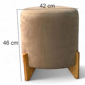 Estrutura: Madeira Maciça de eucalipto de reflorestamento Revestimento: Tecido Veludo de alta qualidade Formato: Redondo Assento: Fixo, em espuma D26Pés: Sim, palito de madeira maciça de eucalipto Peso: Suporta o peso de 100 KilosDimensões do produto montado