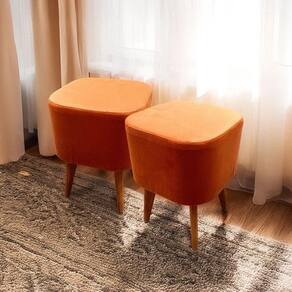 Puff Banqueta Decorativa Pés Palito 2 Unidades Veludo Terracota Ravena Shop Jm