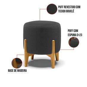 Tem novidades chegando por aqui! Olha só o nosso inédito Puff Stella Bouclê. Sim, os melhores Puff estão aqui! O Puff Stella Bouclê é para todas as ocasiões, é ideal para você relaxar, assistir tv ou ler um livro, mantendo-o confortável ao longo do dia! Um móvel versátil, que foge do convencional pelo seu design e tecido luxuoso. Seu formato, marcante e sofisticado, oferece conforto de forma excepcional. Desenvolvido com atenção aos detalhes, para atender todas suas expectativas e necessidades. Seu aspecto arredondado e anatômico, possibilita que a postura fique sempre alinhada, mantendo a coluna na posição correta. Ele dispõe de um acabamento impecável, revestido em Bouclê em tom Grafite, um tecido maleável que além de ser muito bonito, é a grande tendência do momento, por ser uma lã mais refinada, quente, com toque suave e agradável, semelhante à textura natural da ovelha. Contém uma estrutura robusta, sua sustentação é dada pela Base Madeira Castanho, que garante mais segurança e firmeza ao sentar-se. Já o enchimento é feito em espuma D-23 no assento, garantindo maior conforto ao usuário. Ah! Vale a pena lembrar que o Puff Stella Bouclê, foi produzido em quantidades limitadas, para aqueles que procuram criar um visual diferenciado e exclusivo. Então, não deixe de aproveitar esse lançamento, hem! Leve o seu agora mesmo. Dimensões Puff: Altura total: 45 cm Largura total: 42 cm Profundidade total: 42 cm Altura do chão ao assento: 45 cm Espessura do assento: 31 cm Tamanho dos pés: 25 cm Peso: 12 kg Especificações do Produto: Estrutura: Madeira de Eucalipto Espuma: D-23 Tecido: Bouclê Tipo de pés: Base de Madeira Castanho Peso suportado: 120 kg Garantia: 90 dias contra defeito de fabricação Montagem: O produto vai montado Instruções de limpeza: Utilizar um pano limpo e levemente úmido Você irá receber: 01 Puff - Entregue em: 01 Volume Observações Relevantes - Todos os produtos vão embalados com total segurança; - As cores dos produtos podem sofrer alterações dependendo do seu monitor; - Para futuras compras, não garantimos a mesma tonalidade de cor, pois existe variação a cada lote do fabricante do tecido; - As imagens são meramente ilustrativas, não acompanham objetos de decoração e eletros; - Confira as dimensões do produto no momento da compra e certifique-se de que passará normalmente por escadas, elevadores, portas e corredores; - Importante: Por se tratar de estofado as medidas podem ter uma pequena variação em até 3 cm; - Não nos responsabilizamos no ato da por montagens, desmontagens, instalações de produtos; - Não nos responsabilizamos no ato da por subir escadas, elevadores, nem utilização de guinchos ou equipamentos similares para acesso a pisos superiores em apartamentos; - A do produto é realizada em todo território nacional, até onde as rodovias alcançam, s fluviais ou aéreas devem ser cotadas a parte; - Observando as orientações acima, evita-se futuros desagrados ou imprevistos com a do produto. Havendo despesas adicionais, serão de responsabilidade do cliente;