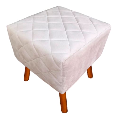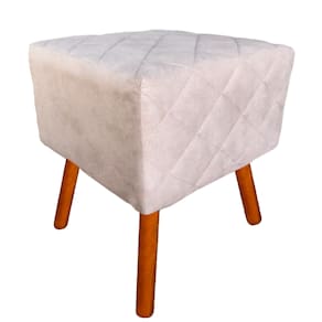 Puff Banqueta Decorativo Em Tressê Isabella Pés Palito Suede Bege - LM DECOR