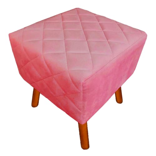Puff Banqueta Decorativo Estofado Para Quarto Closet Isabella Suede Rosa Barbie - LM DECOR