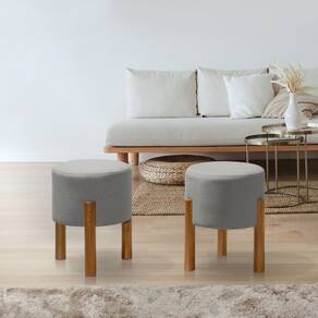 Banqueta Puff Decorativo REDONDO Pés Em Madeira Maciça THOR Assento Puf Pufe Puffs