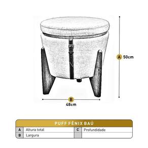 Verificar dimensões para acesso ao local de uso Ambiente Principal: Sala de Estar Cor: Bege Cor do Produto: Bege Escala de Brilho: Fosco Itens Inclusos: 1 Puff Fênix Baú Linha ou Coleção: Fênix Baú Material da Estrutura: Madeira Eucalipto Material dos Pés: Madeira Maciça Necessita Montagem: Não Peso: 7 kg Possui Baú: Sim Possui Pés: 03 Possui Rodízio: Não Recomendações de Uso, Manutenção e Limpeza: Utilizar um pano levemente umedecido, seguido de pano seco.Evitar exposição ao sol, para que não sofra alterações na cor do tecido.Não limpar com escovas ou semelhantes. Suporta Até (kg): 120 kg