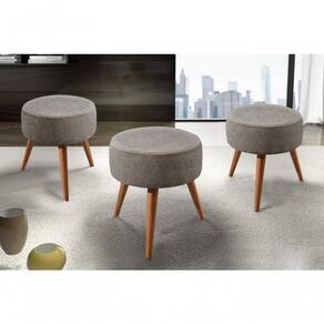 Puff Banqueta Lippe Madeira Maciça Castellar Móbile Linho Cappuccino