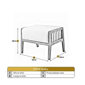 Verificar dimensões para acesso ao local de uso Ambiente Principal: Sala de Estar Cor: Terracota Cor do Produto: Terracota Escala de Brilho: Fosco Itens Inclusos: 1 Puff Gael Linha ou Coleção: Gael Material da Estrutura: Madeira Eucalipto Material dos Pés: Madeira Maciça Necessita Montagem: Não Peso: 9 kg Possui Baú: Não Possui Pés: 04 Possui Rodízio: Não Recomendações de Uso, Manutenção e Limpeza: Utilizar um pano levemente umedecido, seguido de pano seco.Evitar exposição ao sol, para que não sofra alterações na cor do tecido.Não limpar com escovas ou semelhantes. Suporta Até (kg): 120 kg