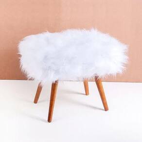 Puff Banqueta Viena Quadrada Pelúcia Branca Pés Castanho - Branco
