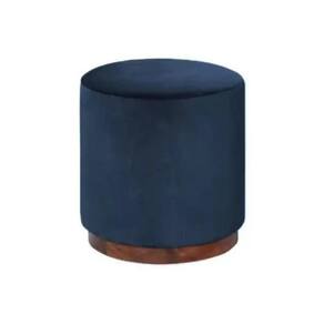 Puff Barcelona Decorativo com Veludo Azul e Base Madeira