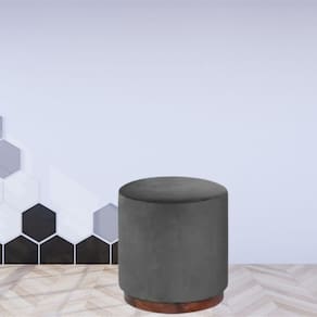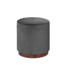 Puff Barcelona Decorativo com Veludo Cinza Cinza e Base Madeira