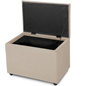 Puff Baú 60cm Porta Brinquedo Organização Assento Decorativo Cor:bege - Blush