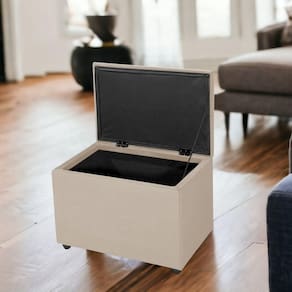 Puff Baú 60cm Porta Brinquedo Organização Assento Decorativo Cor:bege