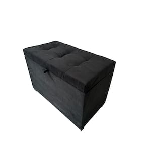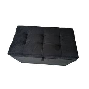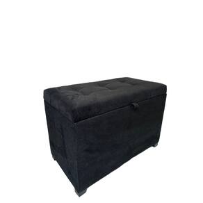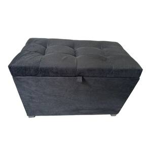 Puff Baú Estofado Em Suede 68 Cm Para Sala, Quarto Em Mdf - Preto