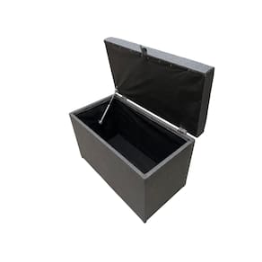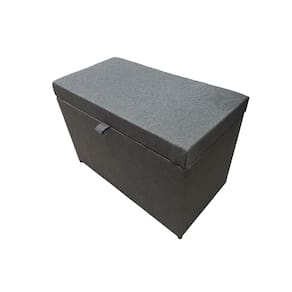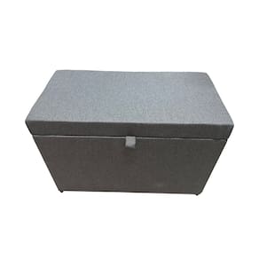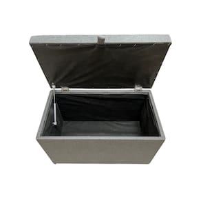 Puff Baú Estofado Retangular C/ Pistão á Gás Em Linho - Cinza Claro