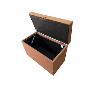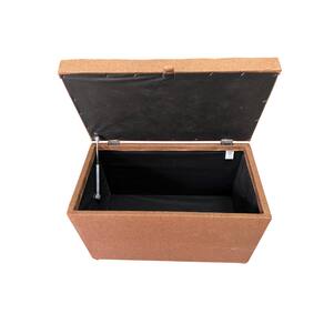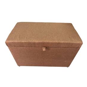 Puff Baú Estofado Retangular C/ Pistão á Gás Em Linho - Laranja