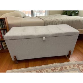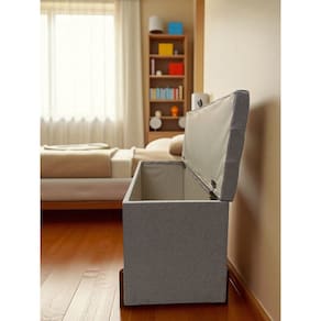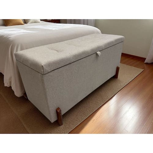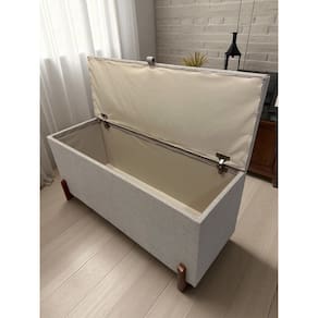 Estrutura em MDF resistente Tecido Linho Premium e elegante Espuma D28 de 5 cm para mais conforto Tampa com dobradiças reforçadas Medidas: 100 cm x 36 cm x 47 cm Decora e organiza qualquer ambiente Marca: Dell Móveis