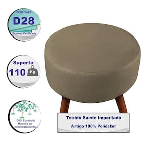 Puff Cama Inbox Hilda Redondo com Pés em Madeira Maciça Tecido Suede Castor - Mostarda