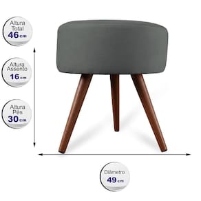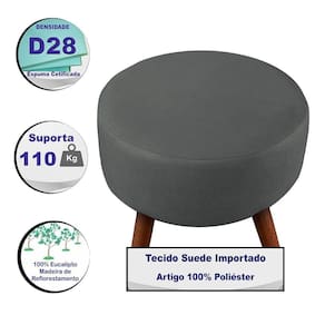Puff Cama Inbox Hilda Redondo Com Pés Em Madeira Maciça Tecido Suede Cinza