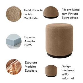 O Puff Redondo Alasca é revestido em tecido Bouclé ou Linho, com os pés aparentes no estilo industrial trazendo um toque de modernidade, é o móvel perfeito para valorizar a sua decoração.