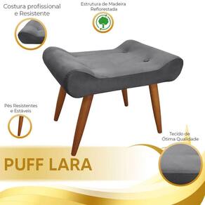 O Puff decorativo Lara e uma peca moderna, elegante e versatil, perfeita para adicionar conforto e estilo a qualquer ambiente. Sua durabilidade, design sofisticado e portabilidade o tornam uma escolha popular na decoracao contemporanea.