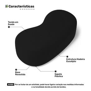Puff Decorativo Living Aisha Orgânico 02 Lugares Suede Preto - Abmaza