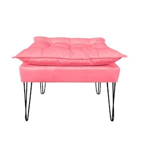 Puff Decorativo Opala Recepção Suede Rosê Pés De Ferro Preto