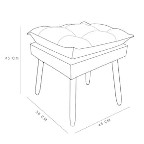 PUFF DECORATIVO OPALA O Puff Decorativo Opala Suede com Pés Palito é o complemento perfeito para adicionar charme e conforto a qualquer ambiente da sua casa. Seu design elegante, aliado ao acabamento em Suede de alta qualidade, confere um toque de sofisticação e aconchego à decoração do seu espaço.   Com pés palito que garantem estabilidade e estilo, este puff é não apenas uma peça decorativa, mas também funcional, podendo servir como assento extra para visitas ou como apoio para os pés ao relaxar. Sua estrutura resistente e durável proporciona conforto e segurança durante o uso diário.   Medidas:- Altura total: 45cm- Largura total: 45cm- Profundidade: 38cmInformações técnicas:- Almofada do assento fixo- Tecido Suede- Estrutura: Madeira eucalipto- Enchimento: Fibra - 04 Pés de madeira de 30cm- Peso suportado: 110kg   Garantia: 90 dias após o recebimento do produto.Instruções de Limpeza: Utilizar um pano limpo e seco. Não limpar com escovas ou produtos abrasivos.Observações importantes:- As imagens são meramente ilustrativas, não acompanham objetos de decoração e eletros;- As cores dos produtos podem sofrer alterações dependendo do seu monitor ou lote do tecido.- Todos os produtos vão embalados com total segurança;- Confira a embalagem e o produto no ato da entrega, caso o produto esteja avariado recuse imediatamente, coloque uma observação no verso da nota.- Não nos responsabilizamos no ato da entrega por montagens, desmontagens, instalações de produtos, nem utilização de guinchos ou equipamentos similares para acesso a pisos superiores em apartamentos.- Confira as dimensões do produto no momento da compra e certifique-se de que passará normalmente por escadas, elevadores, portas e corredores. Observando as orientações acima, evita-se futuros desagrados ou imprevistos com a entrega do produto.A montagem do produto é de responsabilidade do comprador, não efetuamos a montagem do produto.
