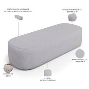 Puff Decorativo Orgânico Para Living Quarto 195cm Doha W01 Linho Cinza - Lyam Decor
