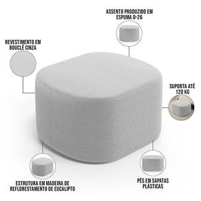 Altura: 42 cm | Color: Cinza | ColorFamily: Cinza | ColorSimple: Cinza | ColorSupplier: Cinza | Com pés: Não | Cor: Cinza | Desenho do tecido: Liso | É dobrável: Não | Estilo: Moderno | Forma: Retangular | Formato de venda: Unidade | Largura: 60 cm | Material: Madeira, espuma | MaterialFamily: Madeira, Tecido | Model: Doha | OriginCountry: | OriginState: PR | Peso máximo suportado: 120 kg | ProductContents: 01 Puff | ProductHeight: 42 cm | ProductInstructions: Produto para uso em ambiente interno, nao devendo ficar exposto ao sol, calor e umidade excessivos. | ProductLength: 60 cm | ProductWarranty: 90 dias após o do produto | ProductWeight: 7 kg | ProductWidth: 70 cm | Quantidade de pés: na | SizeDescription: Altura: 42 cm X Largura: 70 cm X Profundidade: 60 cm | SupplierSimpleName: Puff Decorativo Orgânico para Living Quarto 70cm Doha W01 Bouclê Cinza - Lyam Decor | Unidades por kit: 1